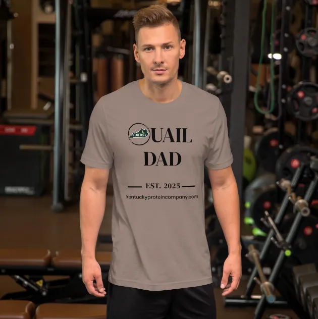 Celebrate the launch of Kentucky Protein Company with this bold and meaningful tee. Featuring a crisp white base, the shirt showcases a stylized Kentucky state silhouette stamped with “KENTUCKY” across the chest. Beneath it, the proud title “QUAIL DAD” stands tall, followed by “EST. 2025” and the company’s official website, kentuckyproteincompany.com. Perfect for founders, farmers, and fans alike, this shirt blends local pride with entrepreneurial spirit.
